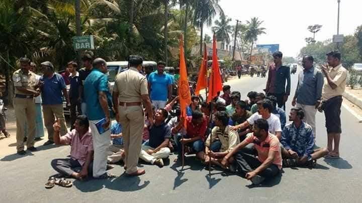 இதனை கண்டித்து கோவை காந்திபுரம் சிக்னல் அருகே சாலையில் அமர்ந்து போராட்டத்தில் ஈடுபட்ட இந்து முன்னணியினரை காவல் துறையினர் கைது செய்தனர்.