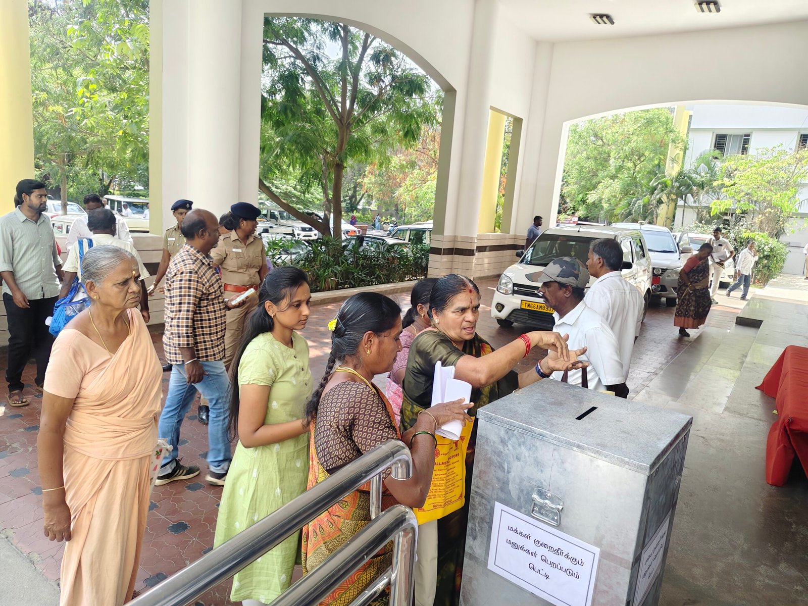 பொதுமக்கள் பலர் இன்று புகார் மனுக்களை பெட்டியில் போட்டனர். மகளிர் உரிமைத்தொகை கேட்டு 300க்கும் மேற்பட்ட பெண்கள் புகார் மனுக்களைப் பெட்டியில் போட்டனர். இதேபோல் இலவச பட்டா மற்றும் வீடு கேட்டு பெண்கள், பொதுமக்கள் புகார் அளித்திருந்தனர்.
