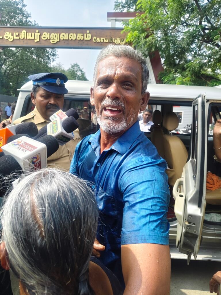 கோவை மாவட்ட கலெக்டர் அலுவலகத்தில் மக்கள் குறை தீர்ப்பு கூட்டம் இன்று நடந்தது. இதில் ஆலாந்துறை பகுதி சேர்ந்த வெங்கடாசலம் (55), இவர் மனைவி நாகமணி ஆகியோர் புகார் மனு அளிக்க வந்தனர். அப்போது தங்களது கையில் இருந்த கரசினை இருவர் தலைமீது ஊற்றி தீ பற்ற வைக்க முயன்றனர். அதற்குள் அங்கே பாதுகாப்பு பணியில் இருந்த போலீசார் அவர்களை பிடித்து தீப்பெட்டியை பறித்தனர். அவர்கள் கதறி அழுது கொண்டே போலீசாரிடம் கூறுகையில் எங்களுக்கு 45 ஆண்டுகளுக்கு முன்பு அரசு இலவசமாக ஒன்றை சென்ட் பட்டா கொடுத்தது. இதில் பட்டா எண் பிழையாக அச்சிடப்பட்டிருந்தது. இதை சரி செய்ய தாலுகா அலுவலகத்தில் பலமுறை நாங்கள் புகார் மனு அளித்தோம். இப்போது கூட அங்கே சென்று பிழையை சரி செய்து தருமாறு கேட்டோம் ஆனால் அவர்கள் சரி செய்ய மறுத்து விட்டார்கள். மேலும் எங்களது இடத்தை பக்கத்தில் உள்ளவர்கள் மூன்று பேர் அபகரிக்க முயற்சிக்கிறார்கள். நிம்மதியாக வாழ முடியாத சூழலில் நாங்கள் வேறு வழியின்றி தற்கொலை செய்ய இங்கே வந்தோம். இப்போது இல்லாவிட்டாலும் இன்னொரு முறை நாங்கள் தற்கொலை செய்வோம் என்றனர். கலெக்டர் அலுவலக வளாகத்தில் தம்பதிகள் தற்கொலைக்கு முயன்றது பரபரப்பு ஏற்படுத்தியுள்ளது.