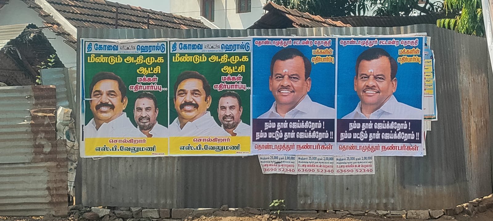 கோவை மாநகர் மற்றும் புறநகர் பகுதியில் மீண்டும் அதிமுக ஆட்சி, மக்கள் எதிர்பார்ப்பு என்ற பெயரில் போஸ்டர் ஒட்டப்பட்டுள்ளது. முன்னாள் அமைச்சர் எஸ் பி வேலுமணி தனது ஆதரவாளர் மூலமாக இந்த போஸ்டர் ஒட்டி இருப்பதாக தெரிகிறது.