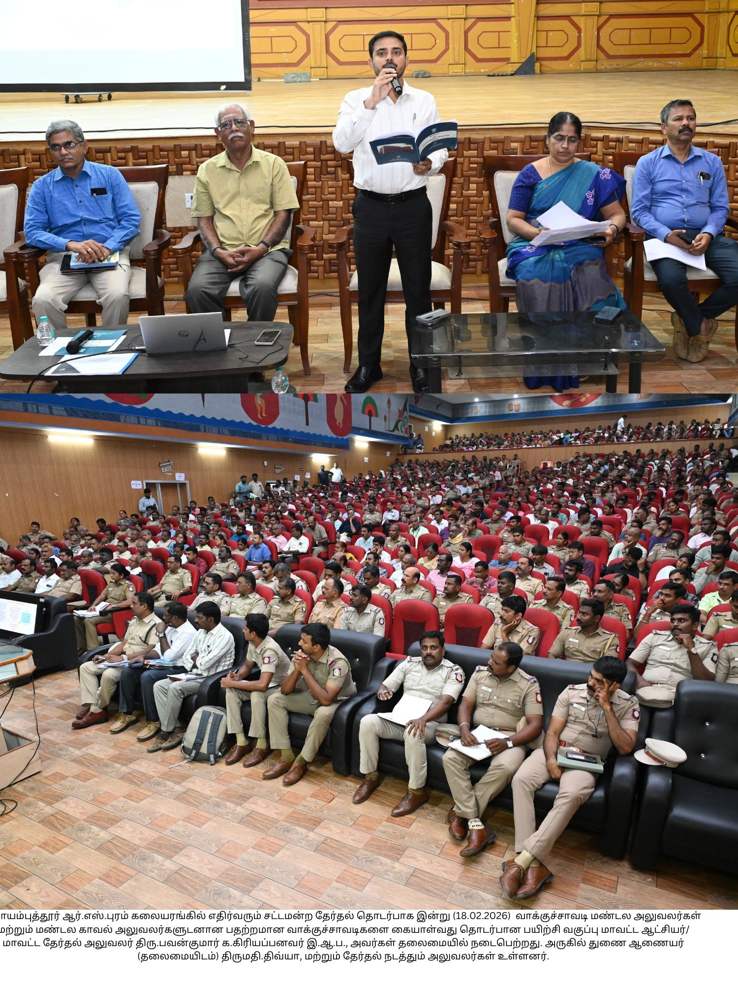 கோவை ஆர்.எஸ் புரம் கலையரங்கில் கோவை மாவட்டத்தில் சட்டமன்ற தேர்தலில் பதட்ட ஓட்டு சாவடிகளை கையாளும் முறை தொடர்பாக மண்டல வாக்குசாவடி அலுவலர்களுக்கான பயிற்சி வகுப்பு இன்று நடந்தது.
