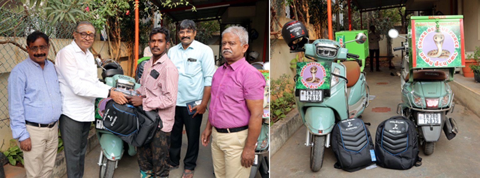 சில நேரங்களில் தீயணைப்புத் துறையினர் வர தாமதம் ஏற்படுகிறது .மேலும் பல்வேறு இடங்களில் பாம்புகள் நடமாட்டத்தினால் பொதுமக்கள் வீடுகளில் வசிக்க முடியாமல் தவிக்கின்றனர். இந்த நிலையை தவிர்க்க தன்னார்வ அமைப்பினர் உதவியும் மூலமாக கோவையை சேர்ந்த அமீன், விக்னேஷ் ஆகியோருக்கு இரண்டு இரு சக்கர வாகனங்கள் மற்றும் பாம்பு பிடிப்பதற்கான உபகரணங்கள் வழங்கப்பட்டது.