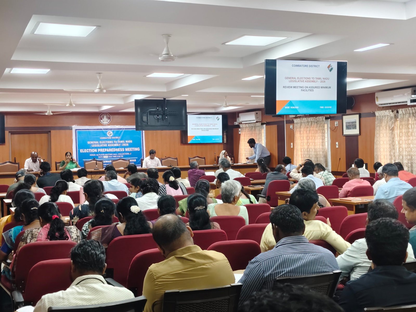 கோவை மாவட்ட கலெக்டர் அலுவலகத்தில் ஓட்டு சாவடிகள் தொடர்பான பணிகள் குறித்து ஆய்வு கூட்டம் இன்று நடந்தது.