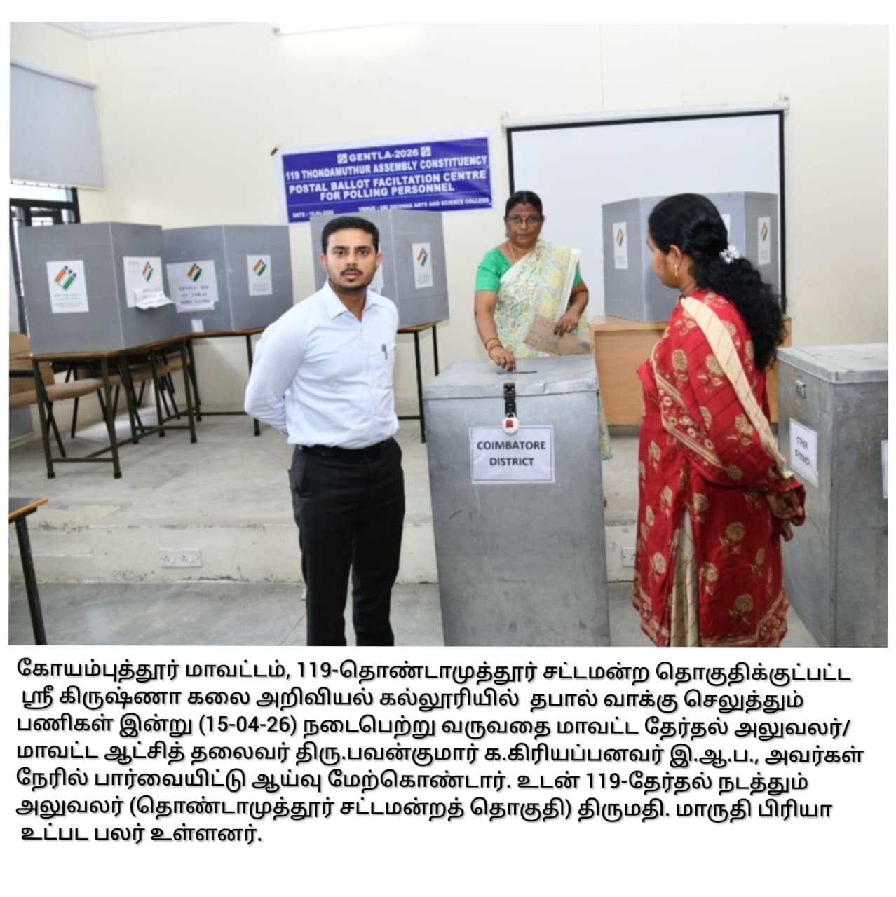 கோவை தெற்கில் நிர்மலா கல்லூரி மையம், சிங்காநல்லூர் தொகுதிக்கு பிஎஸ்ஜி பொறியியல் கல்லூரி, கிணத்துக்கடவு தொகுதிக்கு கற்பகம் அகாடமி மையம், பொள்ளாச்சி மற்றும் வால்பாறை தொகுதிக்கு மகாலிங்கம் பொறியியல் கல்லூரி மையத்தில் அரசு ஊழியர்கள் ஒட்டு போட்டனர்.