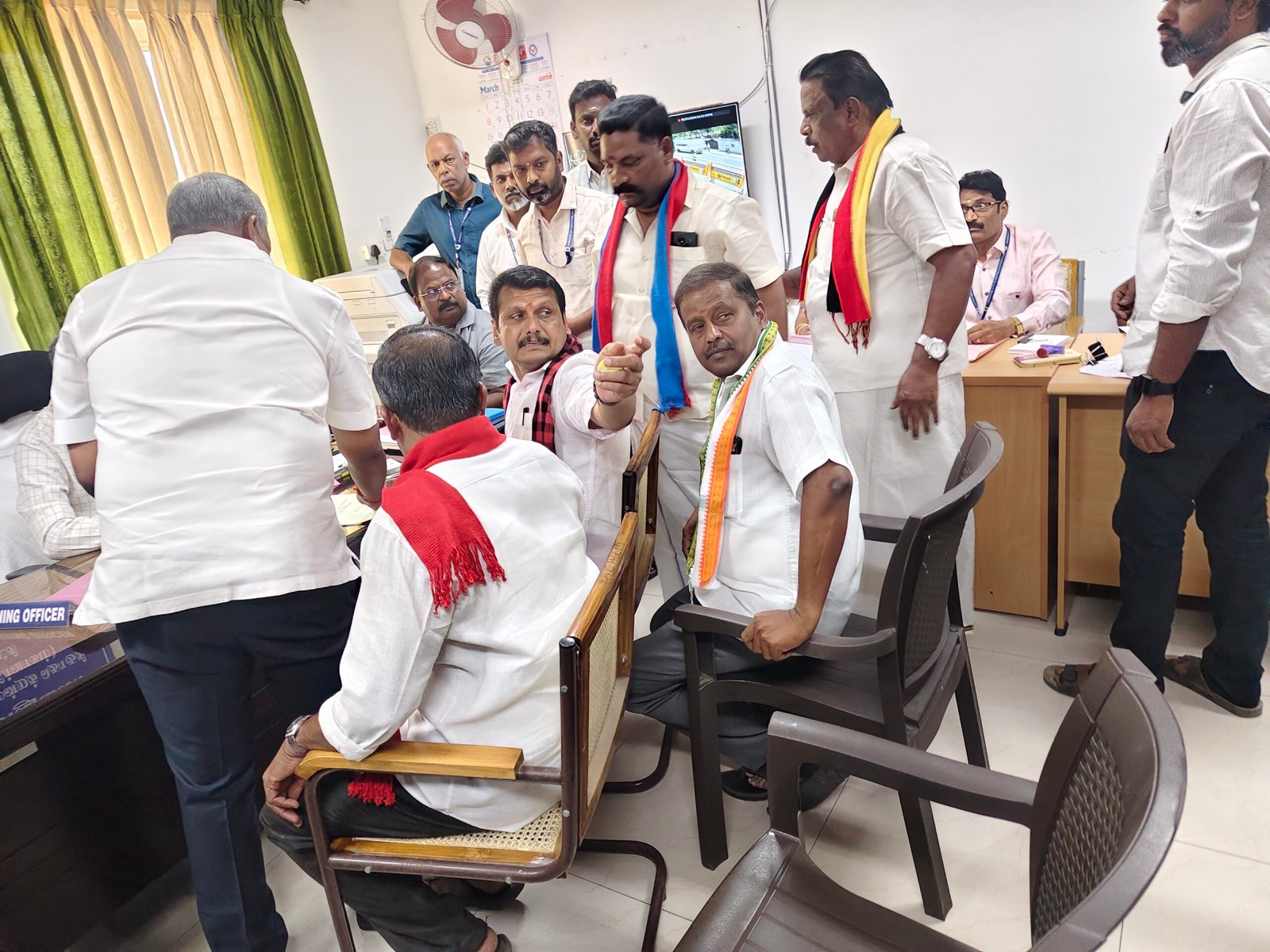 அதிகாரிகளிடம் வாக்குவாதம் செய்தனர். இதனால் பரபரப்பு ஏற்பட்டது. அதிகாரிகள் முறையாக கையெழுத்து போடப்பட்டிருக்கிறது. படிவங்கள் பூர்த்தி செய்யப்பட்டு இருக்கிறது என தெரிவித்து மனுவை ஏற்றனர்.