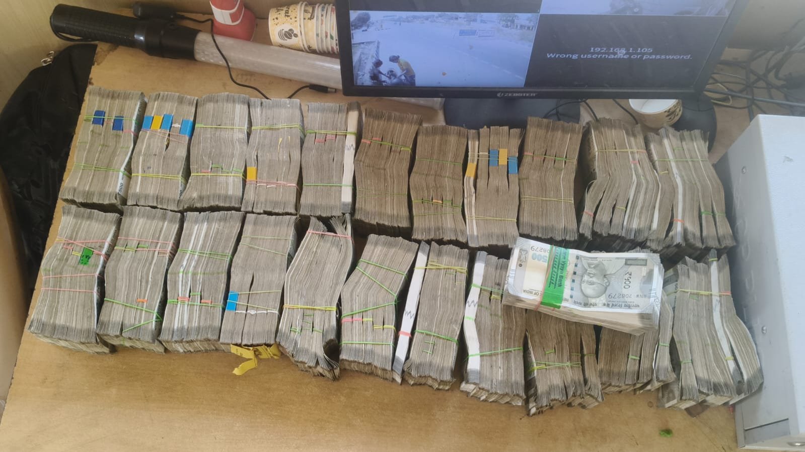 கோவை மதுக்கரை எட்டிமடை செக்போஸ்ட் பகுதியில் போலீசார் வாகன சோதனை இன்று நடத்தினர். அப்போது இருசக்கர வாகனம் ஒன்றில் சீட் கவர் பெட்ரோல் டேங்க் போன்றவற்றில் கட்டுக்கட்டாக 500 ரூபாய் நோட்டுகள் இருந்தது.