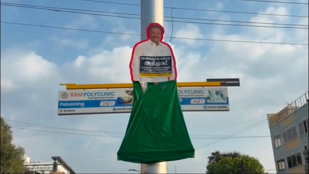 பொள்ளாச்சியில்அதிமுக மாஜி அமைச்சர் படங்களுக்கு பாவாடை ,செருப்பு மாலை…!