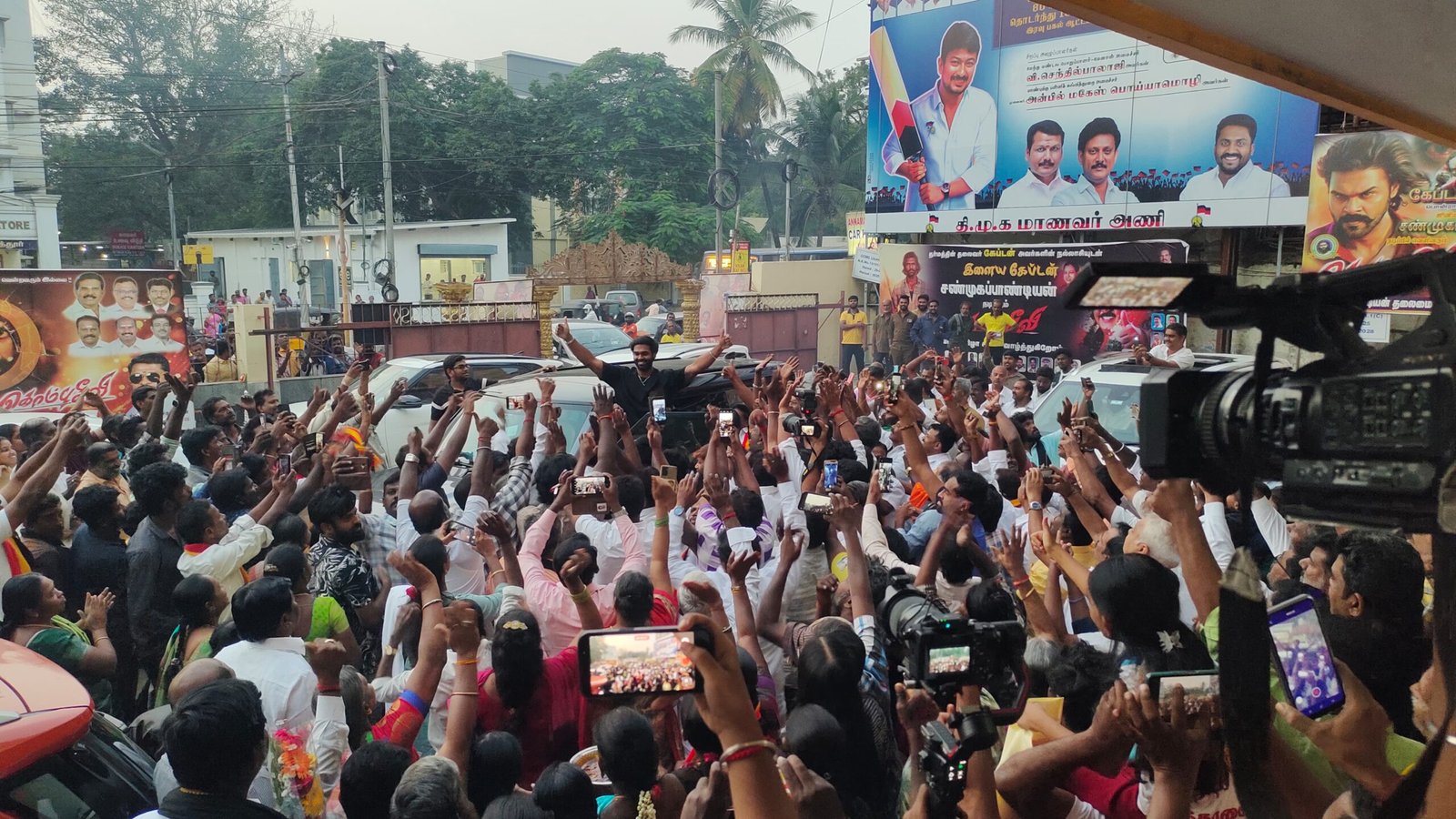 அப்போது அங்கே வந்திருந்த ரசிகர்கள் சண்முக பாண்டியனுக்கு தடபுடலாக வரவேற்பு தந்தனர். அப்போது பேசிய சண்முக பாண்டியன் எனது அப்பா விஜயகாந்த் வாழ்க்கை வரலாற்று படத்தில் நடிக்க மிகுந்த ஆர்வமாக எதிர்பார்ப்பில் இருக்கிறேன். ஆனால் அதற்கேற்ற டைரக்டர் அமைய வேண்டும். இது நடந்தால் கேப்டன் வாழ்க்கை வரலாற்று படத்தில் நடிப்பேன்.