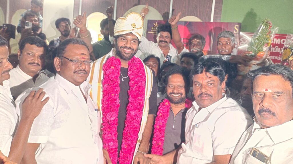 கோவை சினிமா தியேட்டரில் கொம்பு சீவி சினிமா திரைப்படம் வெளியானது. இதன் பிரமோசனுக்கு படத்தின் ஹீரோ விஜயகாந்தின் மகனான சண்முக பாண்டியன் வந்திருந்தார்.