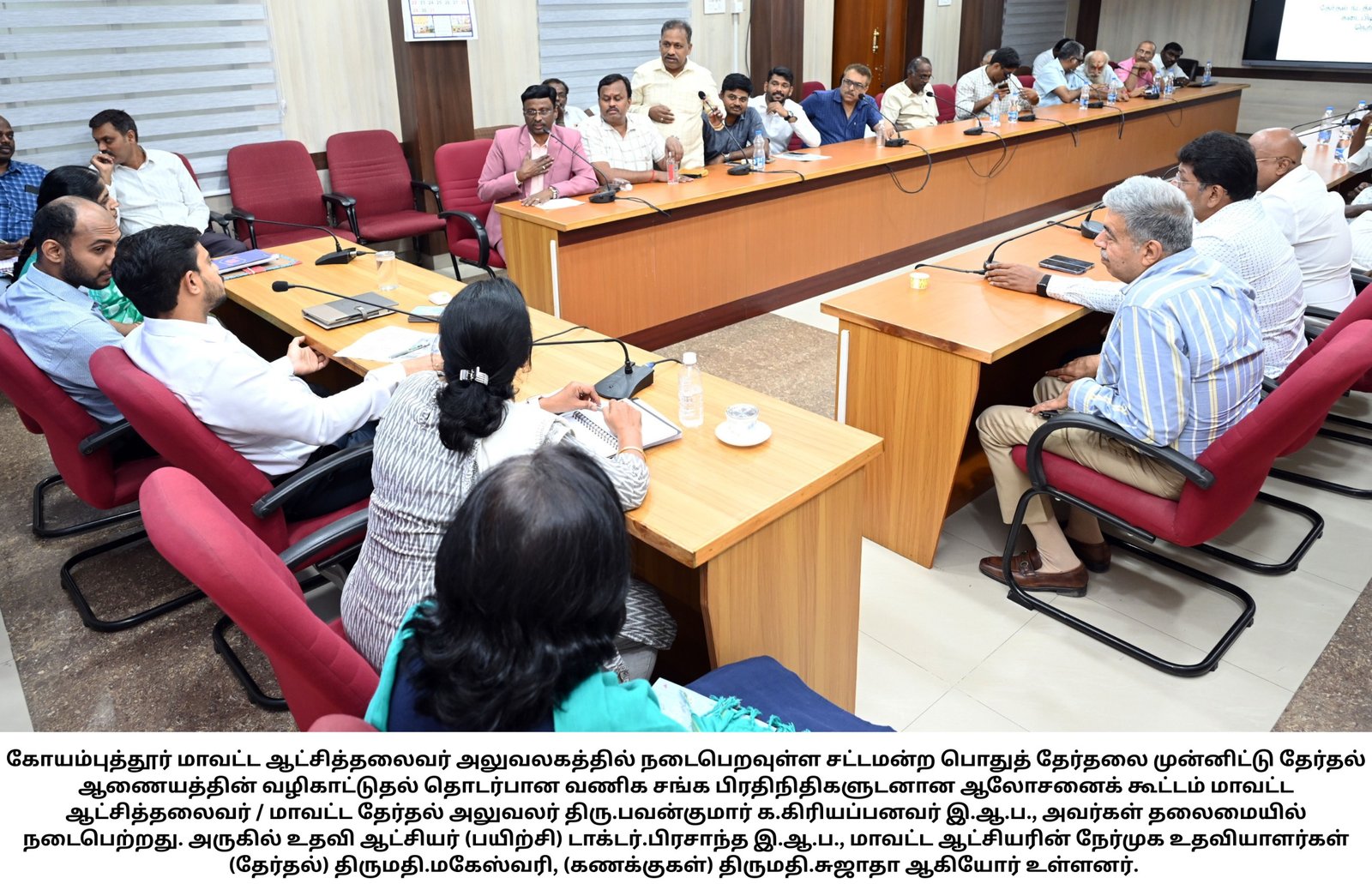 கோவை மாவட்ட கலெக்டர் அலுவலகத்தில் தேர்தல் கண்காணிப்பு குழு (மானிட்டரிங் கமிட்டி) அதிகாரிகளின் கூட்டம் இன்று நடந்தது.