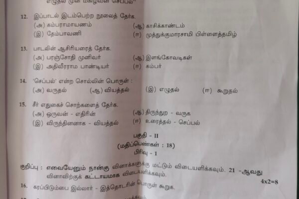 தமிழகத்தில் பத்தாம் வகுப்பு பொதுத்தேர்வு இன்று நடந்தது. இந்த தேர்வில் 44 கேள்விகள் கேட்கப்பட்டது. வினாத்தாளில் 11 கேள்வியாக புதன்கிழமையை ஒன்றாம் தேதியாக கொண்ட நாள் காட்டியில் அடுத்த வாரம் செவ்வாய்க்கிழமை தமிழ் எண்ணில் தேர்க என கேள்வி கேட்கப்பட்டிருந்தது. இதற்கு க, அ, ரு, எ என நான்கு விடைகளில் சரியான விடையை தேர்வு செய்ய வேண்டும் என தெரிவிக்கப்பட்டிருந்தது. பாடத்திட்டத்தில் அல்லாமல் டிஎன்பிஎஸ்சி தேர்வு போல் இந்த கேள்வி நூதனமாக மாணவர்களின் தமிழ் அறிவை…