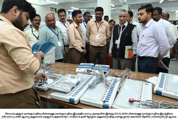 தலைமை தேர்தல் அதிகாரி அர்ச்சனா பட்நாயக் கோவை மாவட்ட தேர்தல் பிரிவு அதிகாரிகளுடன் நேற்று வீடியோ கான்பரன்ஸ் மூலமாக ஆய்வு நடத்தினார். நாளை, மாநில அளவில் இந்திய தேர்தல் கமிஷனர் தலைமையில் ஆய்வு கூட்டம் நடத்தப்படவுள்ளது. இந்த கூட்டத்திற்கு பிறகே தமிழகத்தில் தேர்தல் நடத்தப்படும் நாட்கள், அதற்கான பணிகள் தொடர்பான முக்கிய அறிவிப்புகள் வெளியிடப்படவுள்ளது. தேர்தல் தொடர்பான பணிகளுக்காக தலைமை தேர்தல் அதிகாரி, கோவை மாவட்ட தேர்தல் அதிகாரி பவன் குமார் ,தேர்தல் பிரிவு நேர்முக உதவியாளர்…