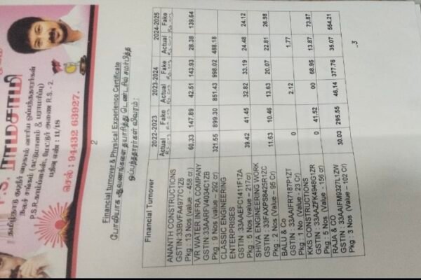 தமிழக மேற்கு மண்டல மாவட்டங்களில் குறிப்பாக கோவை, திருப்பூர், ஈரோடு, கரூர், சேலம், நாமக்கல் உள்ளிட்ட மாவட்டங்களில் 70க்கும் மேற்பட்ட குடிநீர் திட்டங்கள் பயன்பாட்டில் இருக்கிறது. இந்த மாவட்டங்களுக்கான குடிநீர் வினியோகம் மற்றும் பராமரிப்பு பணிகள் தனியார் ஒப்பந்த நிறுவனங்கள் மூலமாக மேற்கொள்ளப்பட்டு வருகிறது. கடந்த சில ஆண்டாக போலியான நிதி மூலதனம் ( பைனான்சியல் டர்ன் ஓவர்), பணி அனுபவ கால சான்றுகளை சமர்ப்பித்து பல கோடி ரூபாய் மதிப்பிலான ஒப்பந்த பணிகளை செய்து வருவதாக…