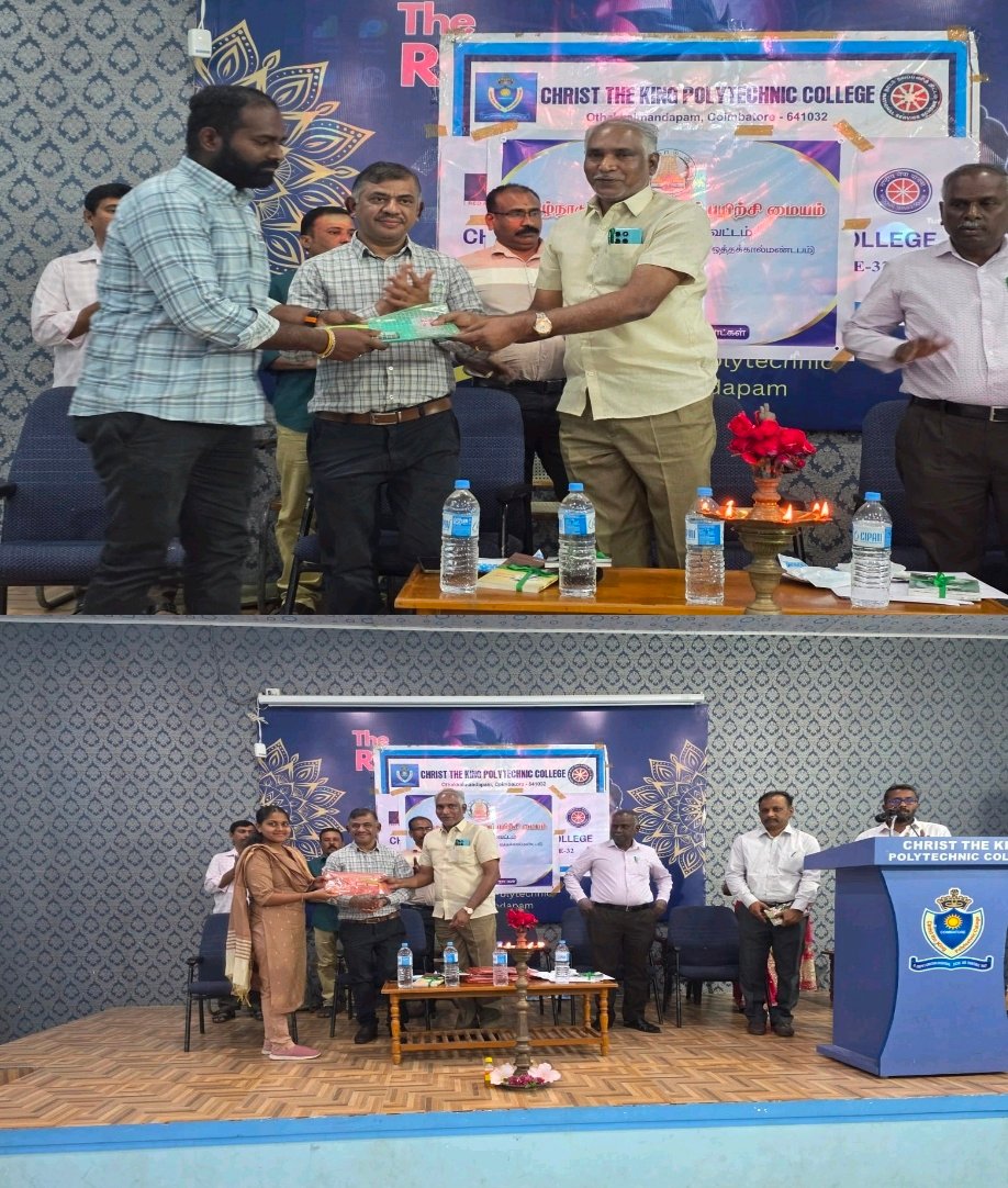 The programme commenced with the lighting of the ceremonial lamp by the Regional Deputy Director of Survey, G. Mohan, in the presence of Assistant Director of Survey S. Saravanan, Madukkarai Tahsildar V. Velmurugan, Technical Manager K.V. Gopalakrishnan, Administrative Officer U. Murugesan, and Dr. A. Antony Fernandez, Principal of Christ the King Polytechnic College.